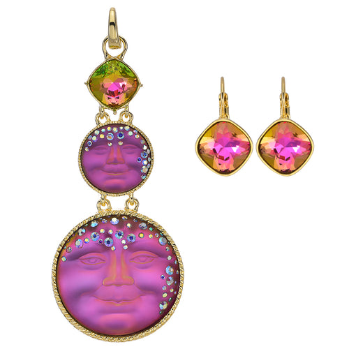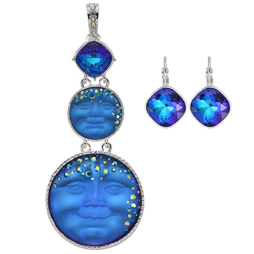 Mystic Goddess Seaview Moon Mother and Child Foldover Pendant With FREE Mystic Dreamer Earrings (Sterling Silvertone/Mystic Blue Sphinx)