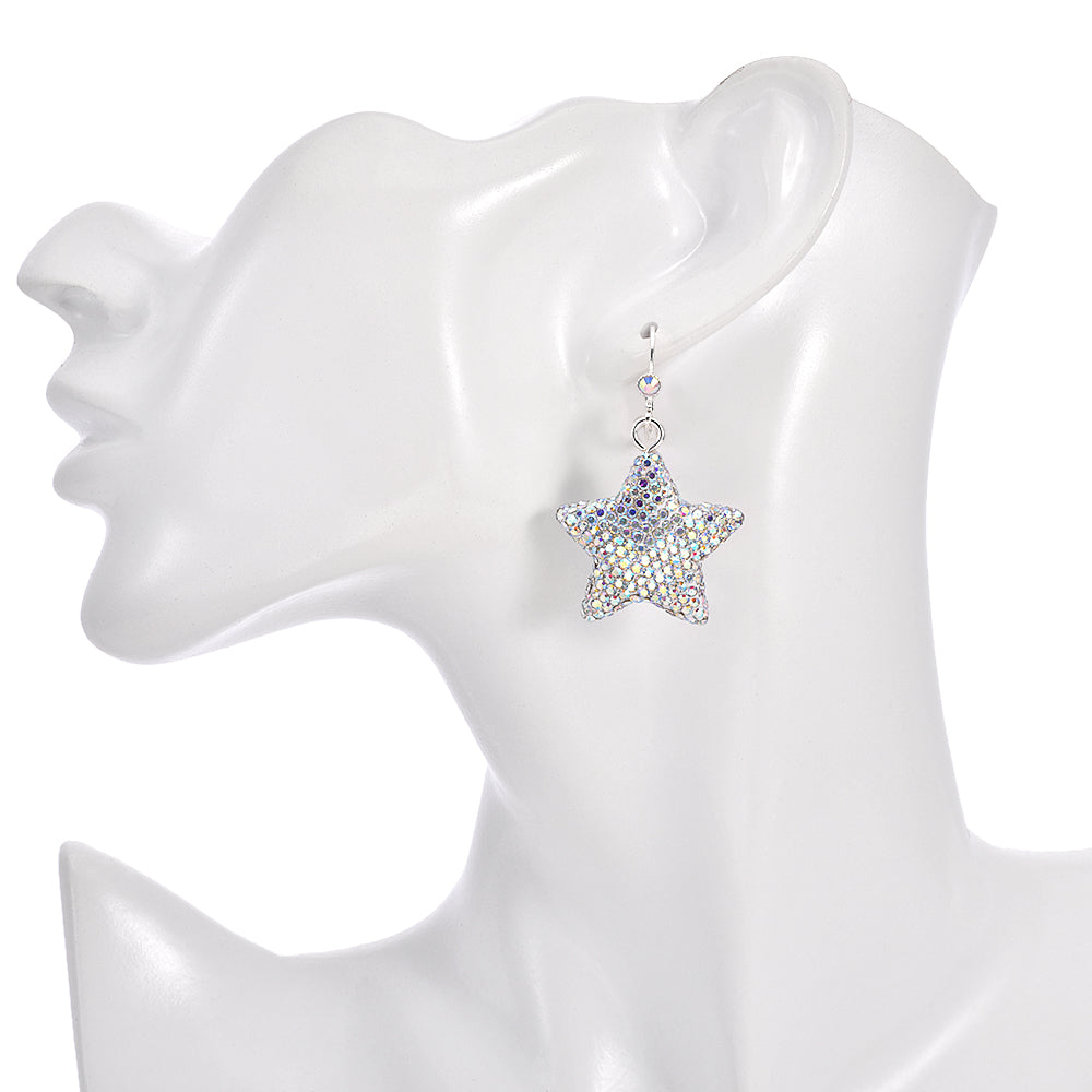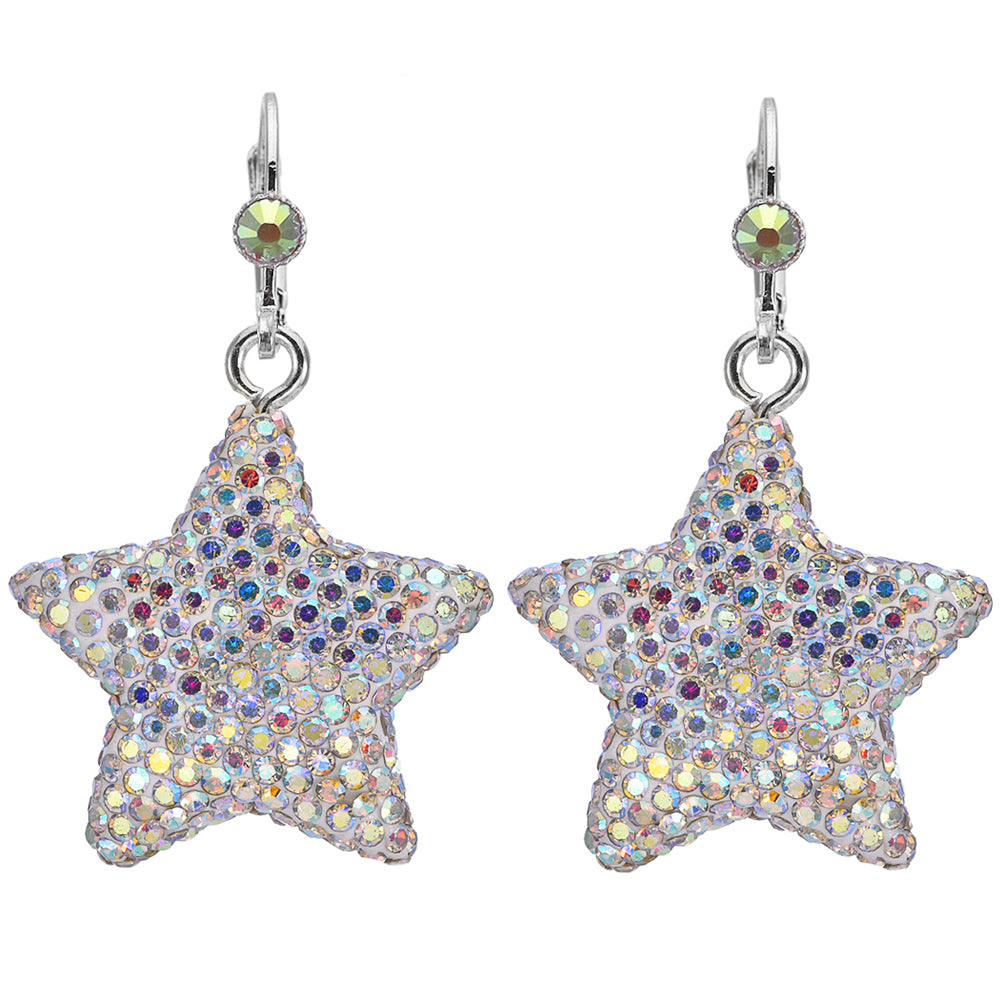 Crystalized 27mm Star Leverback Earrings (Sterling Silvertone)