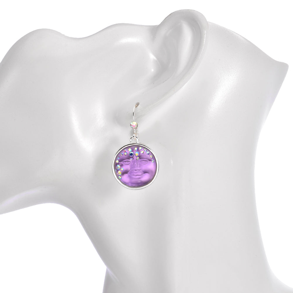 Illusion Goddess Seaview Moon Leverback Earrings (Sterling Silvertone/Violet)