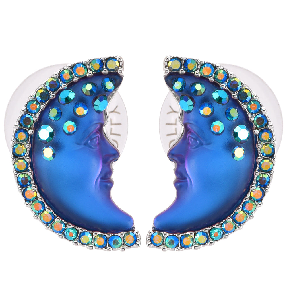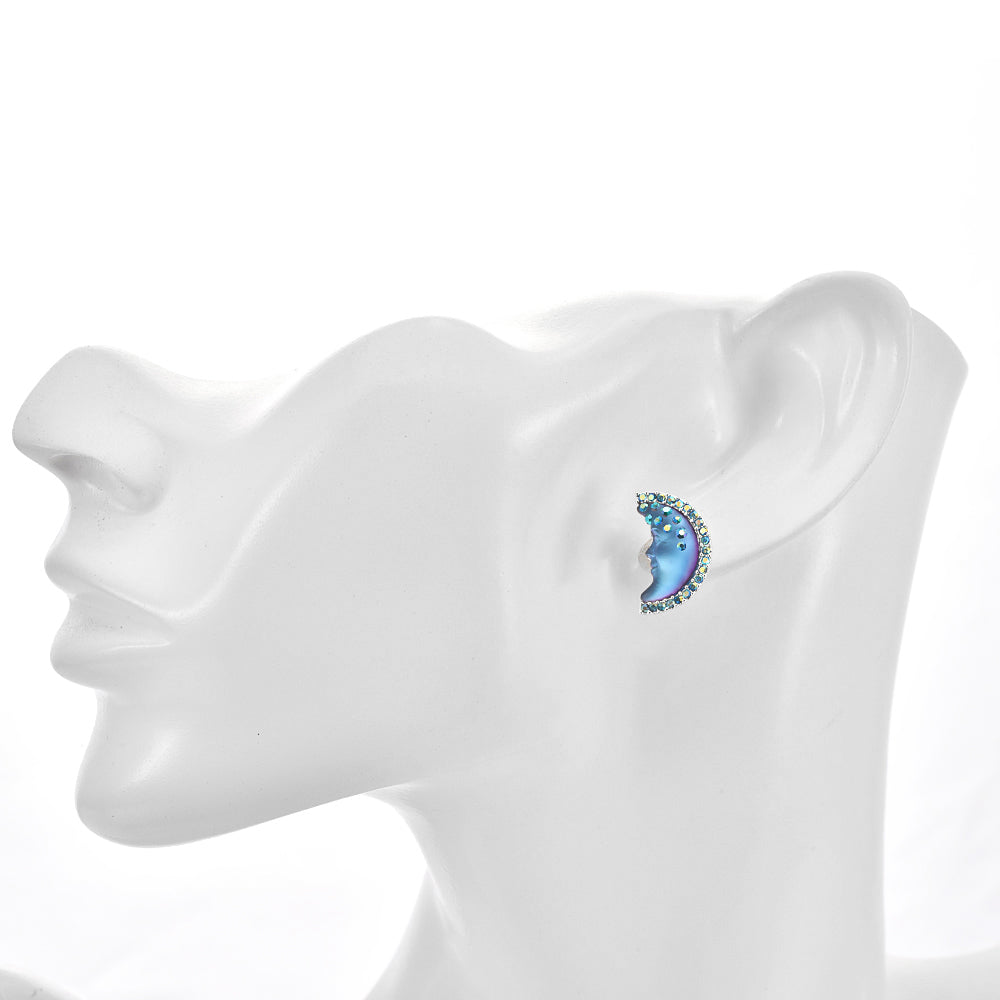 Mystic Seaview Moon Shadow Pierced Earrings (Sterling Silvertone/Blue Sphinx)