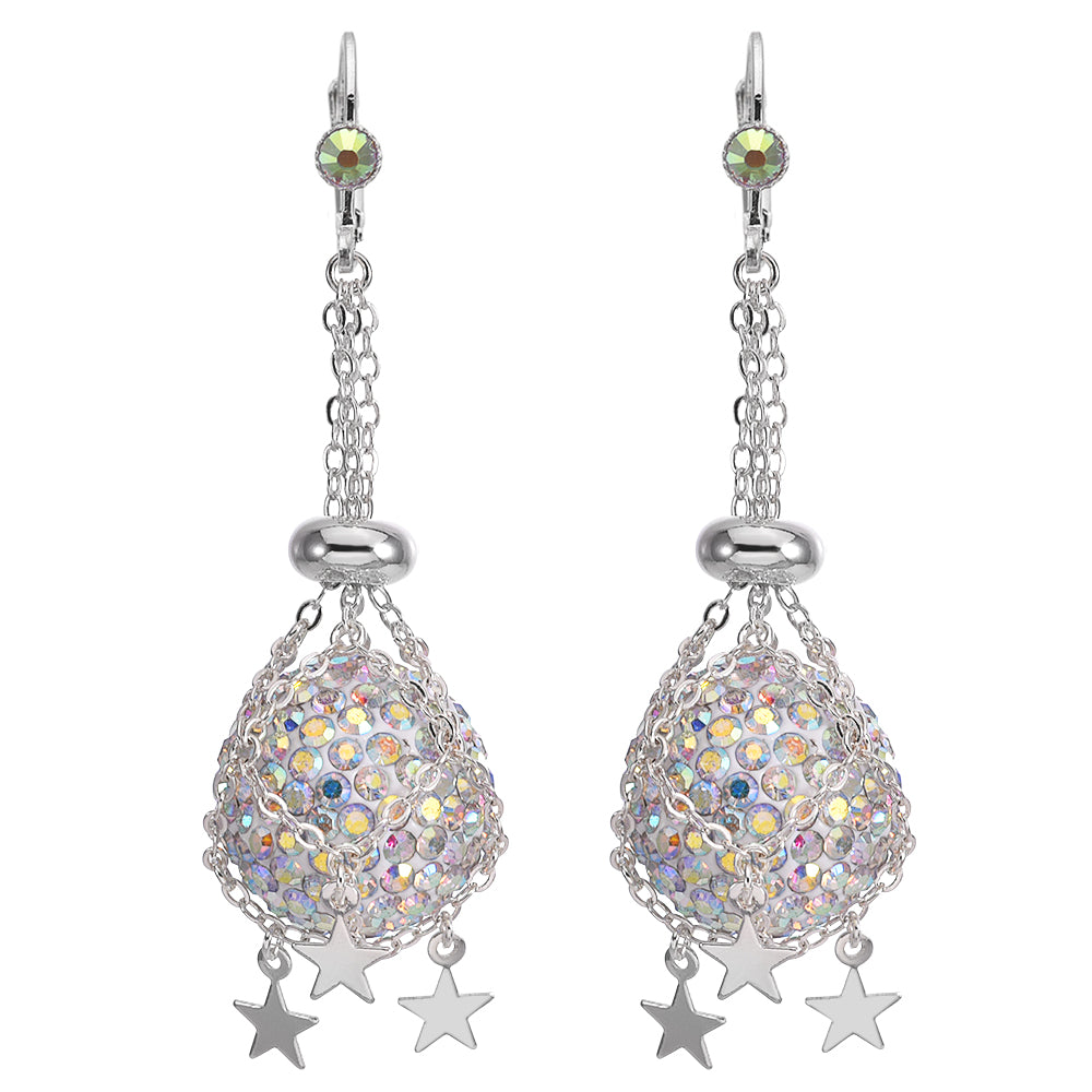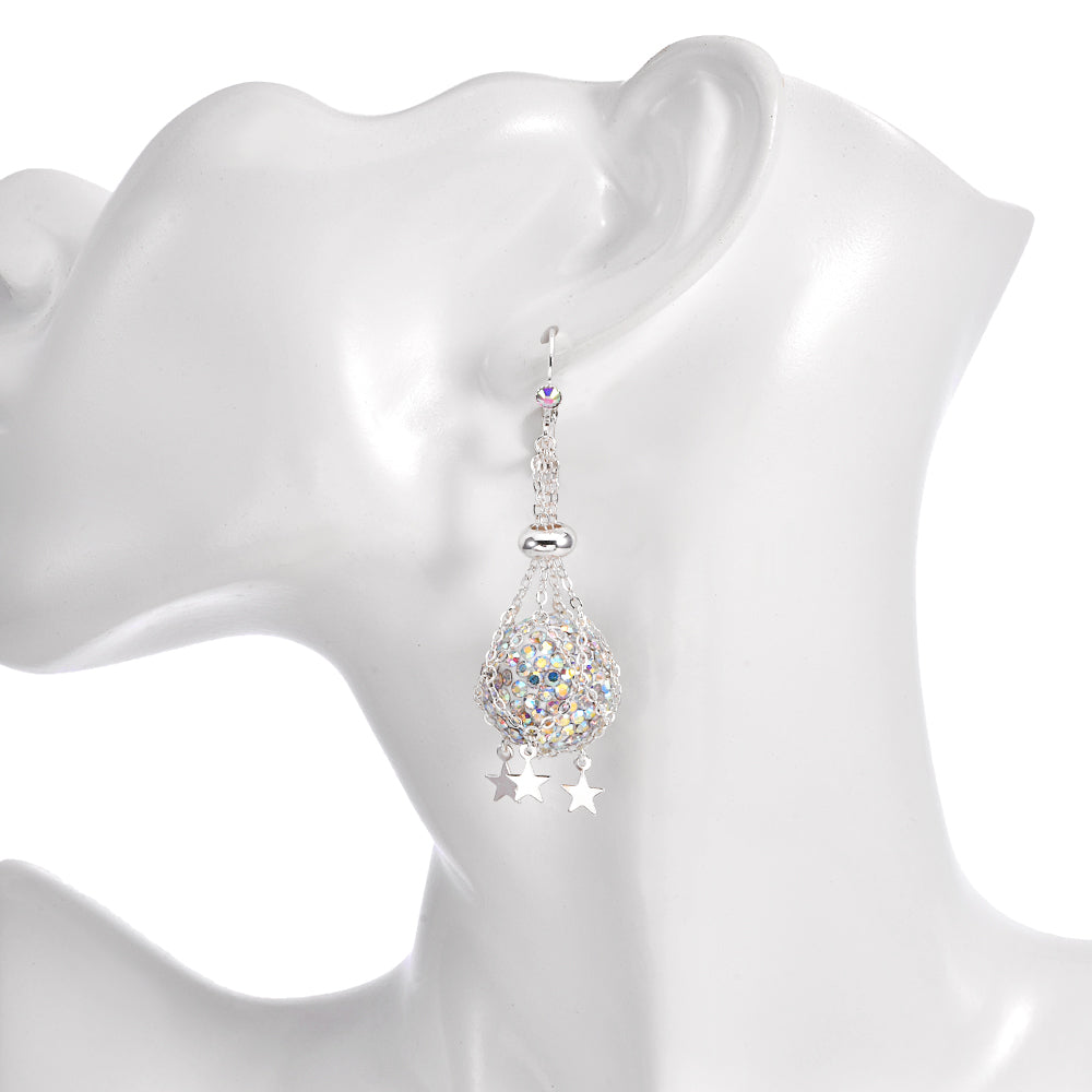 The Spell Caster Leverback Earrings feature a pair of crystal aurora borealis spheres captured within a finery of delicate chains.