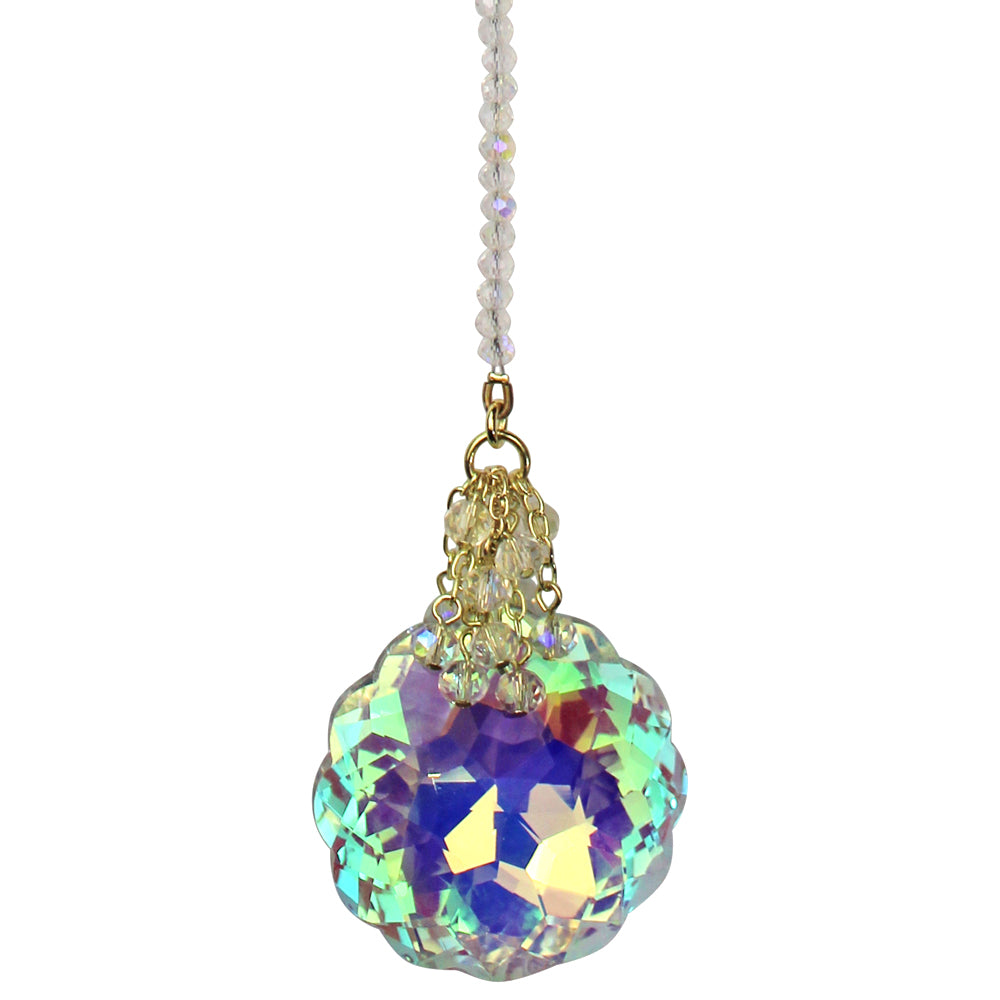 Suspended from a chain and glimmering faceted beads the Shimmer brings energy and magic to the space between light and darkness.