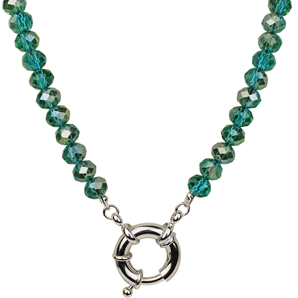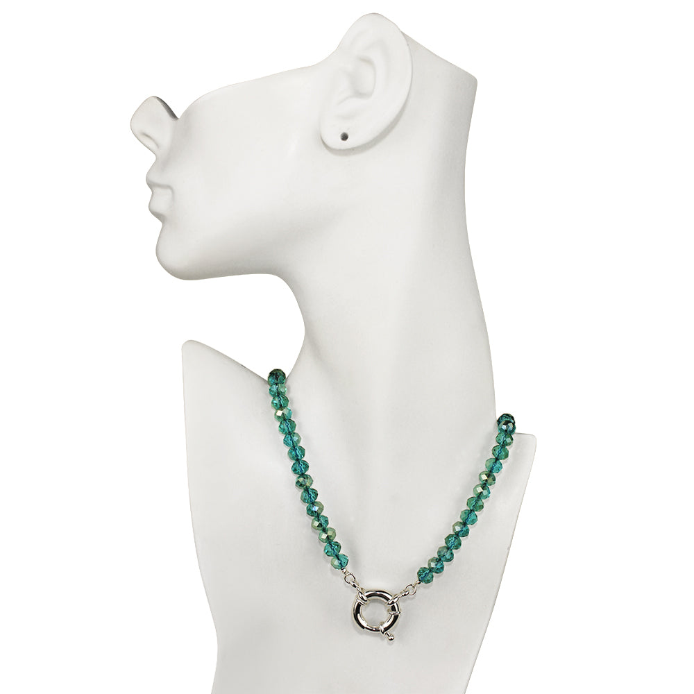 Crystalized 8mm Beaded Sailor Clasp Charm 18" Necklace (Sterling Silvertone/Teal/Azure)