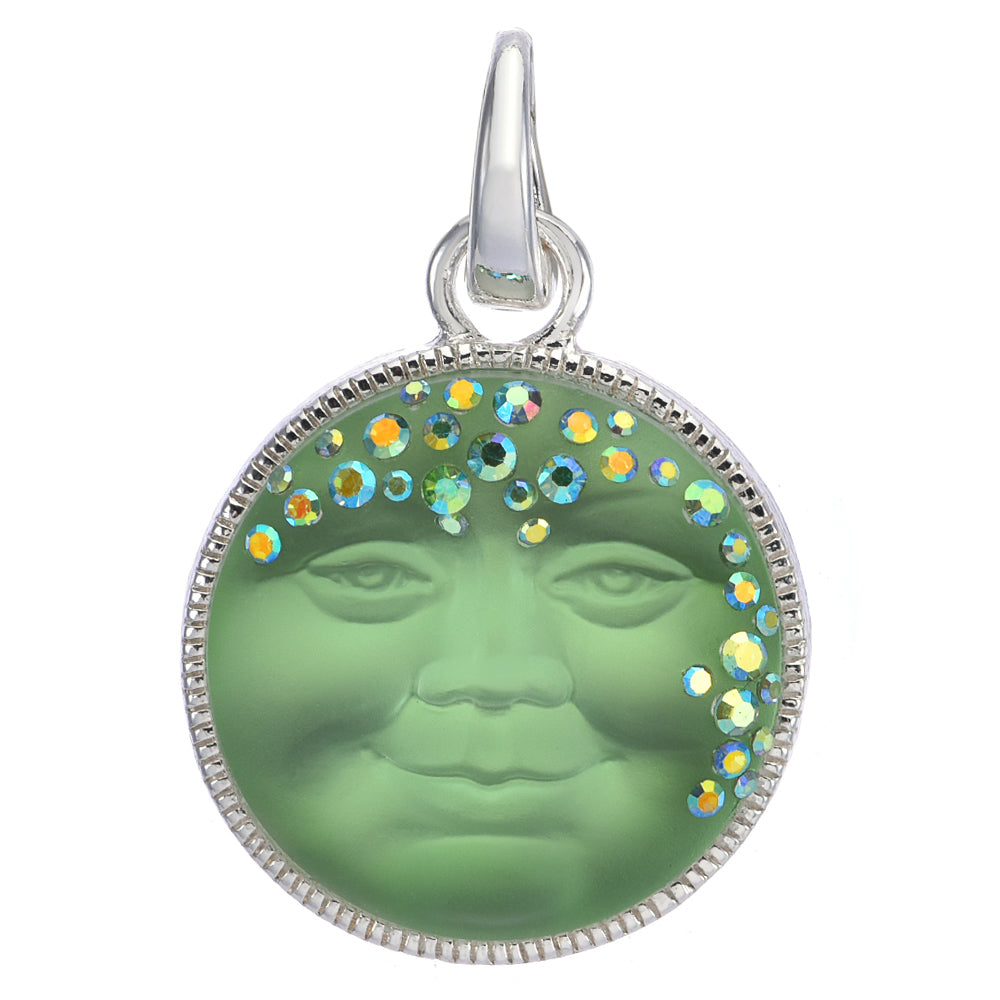 The charm features a large radiant and glowing moon with a kind and serene face.