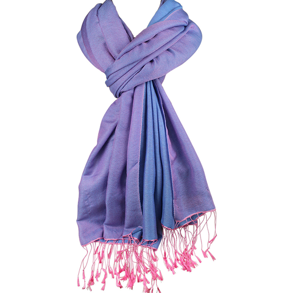 Soft as a whisper, this pashmina shawl drifts across the shoulders like a ribbon of twilight clouds.