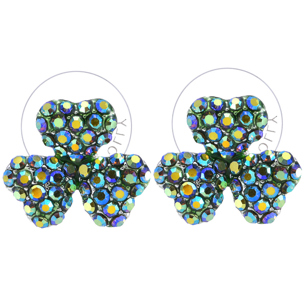 Delicate shamrocks, each leaf sparkling with a mosaic of faceted crystals, dance gracefully from these pierced earrings.
