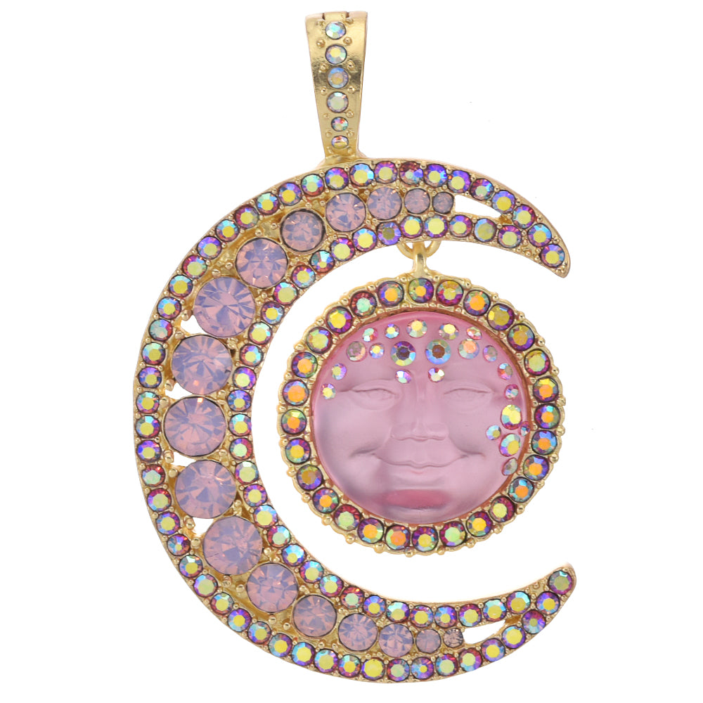 Moondust 18mm Goddess Seaview Moon Foldover Pendant (Goldtone/Pixie Pink)