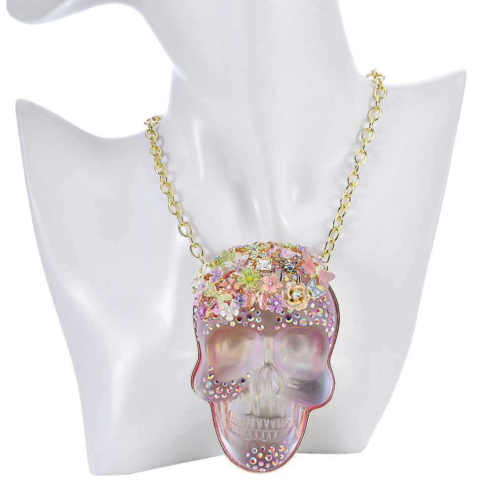 This ornament necklace unveils a resplendent skull, its surface glowing softly like moonlight through a foggy sky.