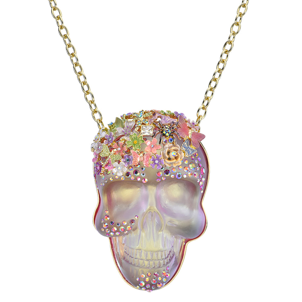 Mystic Enchanted Fairyland Skull Ornament Necklace (Goldtone/Mystic Moonlight)