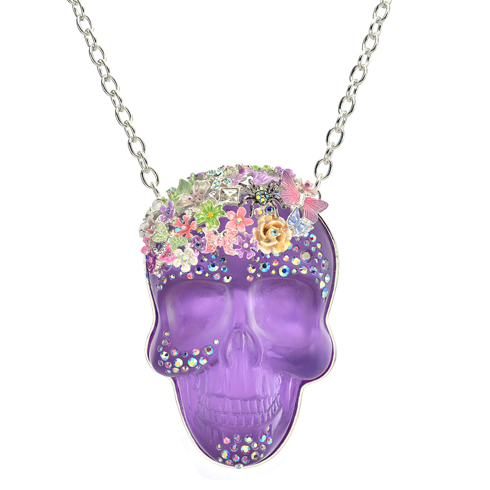 Mystic Enchanted Fairyland Skull Ornament Necklace (Sterling Silvertone/Violet Illusion)
