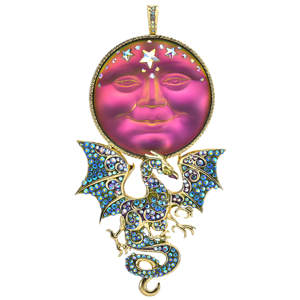 Mystic Seaview Moon 50mm Protector Of The Realm Dragon Foldover Pendant FREE 30" Twisted Sister Black Cord Necklace (Goldtone/Mystic Iridis)