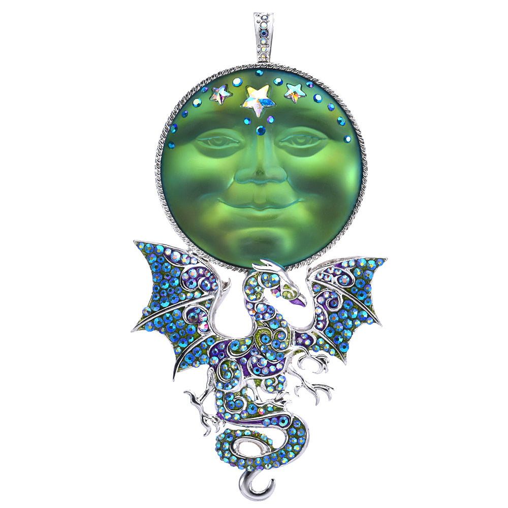 Plated Sterling Silvertone/50mm Green Sphinx Moon.