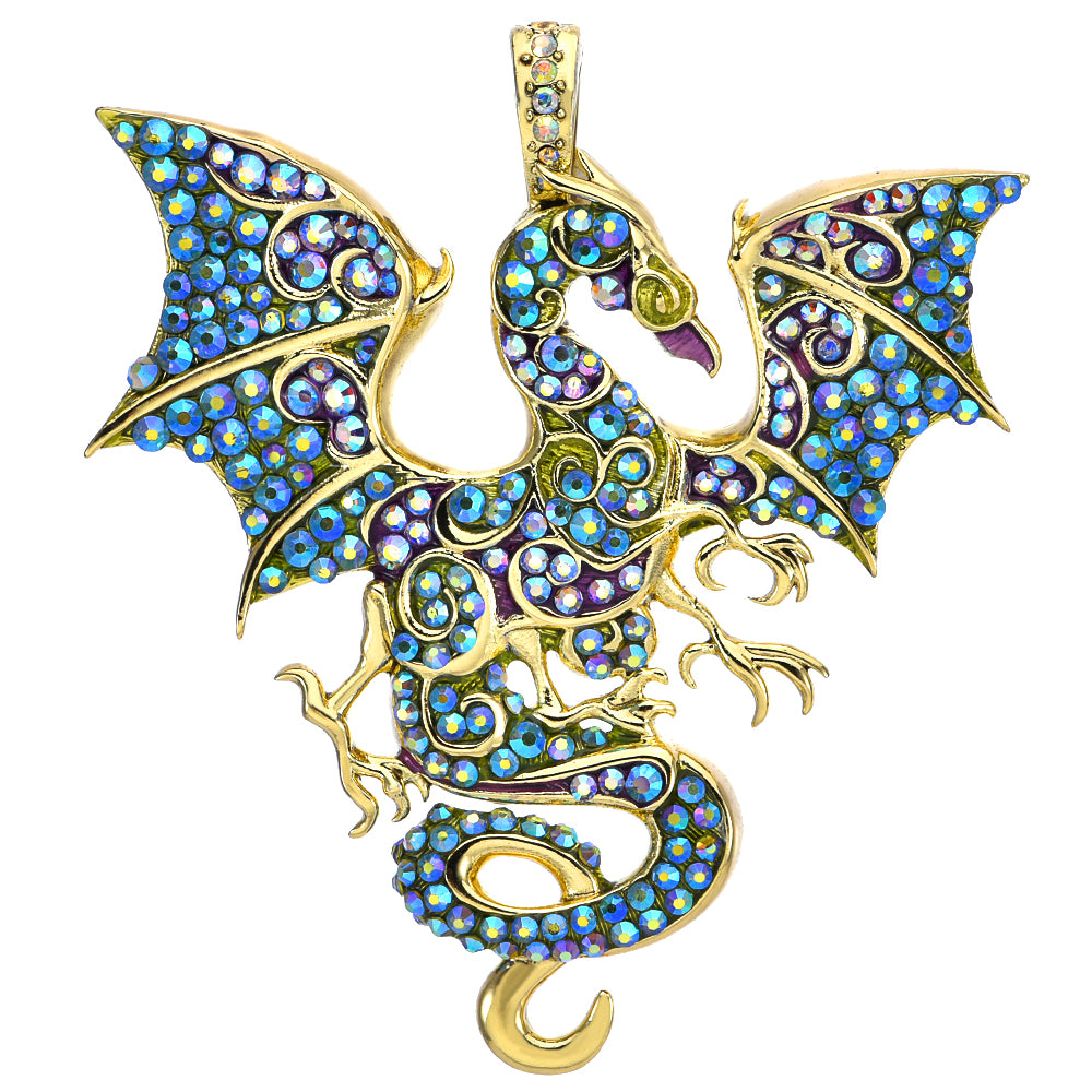 This foldover pendant reveals a magnificent dragon soaring mid-flight, its outstretched wings captured in a moment of eternal grace.