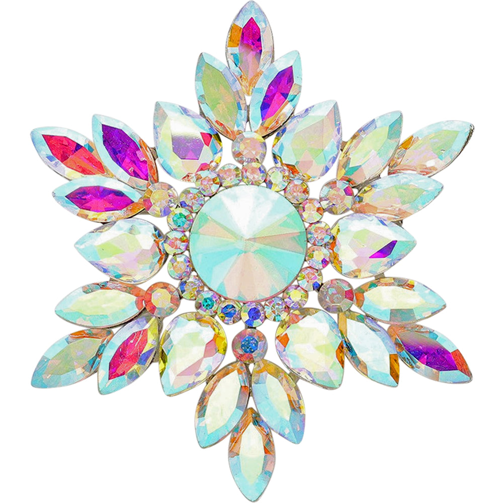 This radiant pin sparkles like a captured supernova, its faceted navette and teardrop crystals scattering light as though born from the heart of a star.