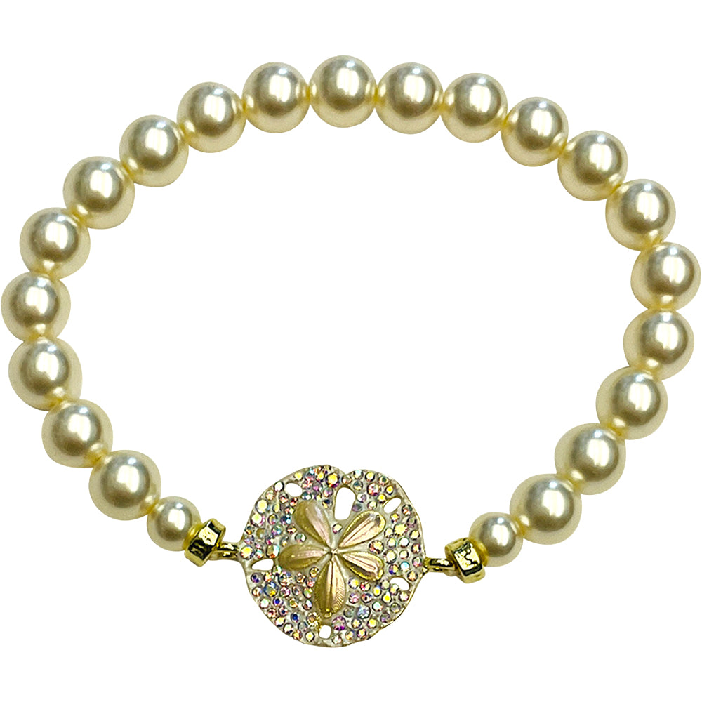 "One Of A Kind" Ocean Dreams Sand Dollar Stretch Bracelet (Goldtone/White)
