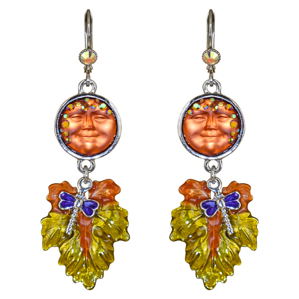Colorful hand enameled leaves fall from our twinkling coppery orange harvest moons and adds to the delight of this magical season.