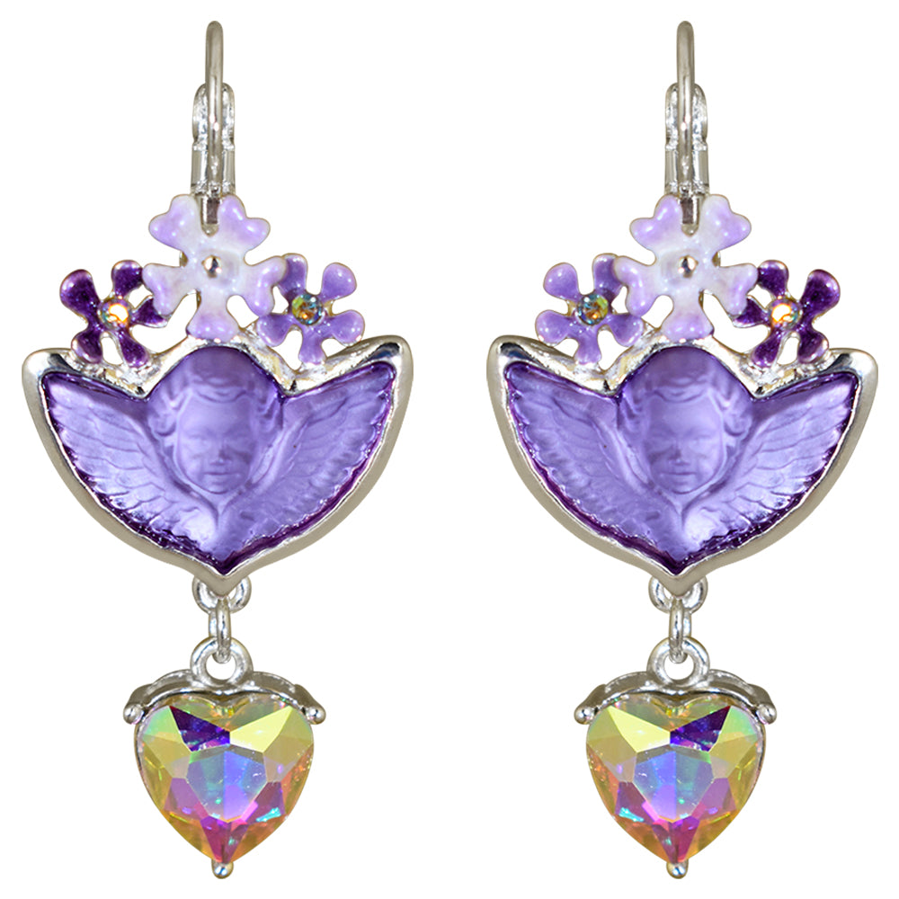Enchanted Garden Cherub Leverback Earrings (Sterling Silvertone/Twilight Purple)