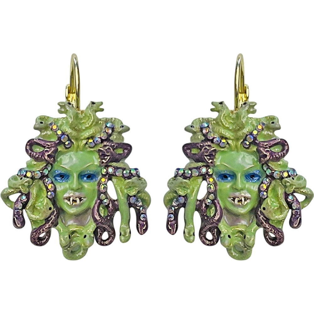 "One Of A Kind" Crystal Medusa Vampire Leverback Earrings (Goldtone)