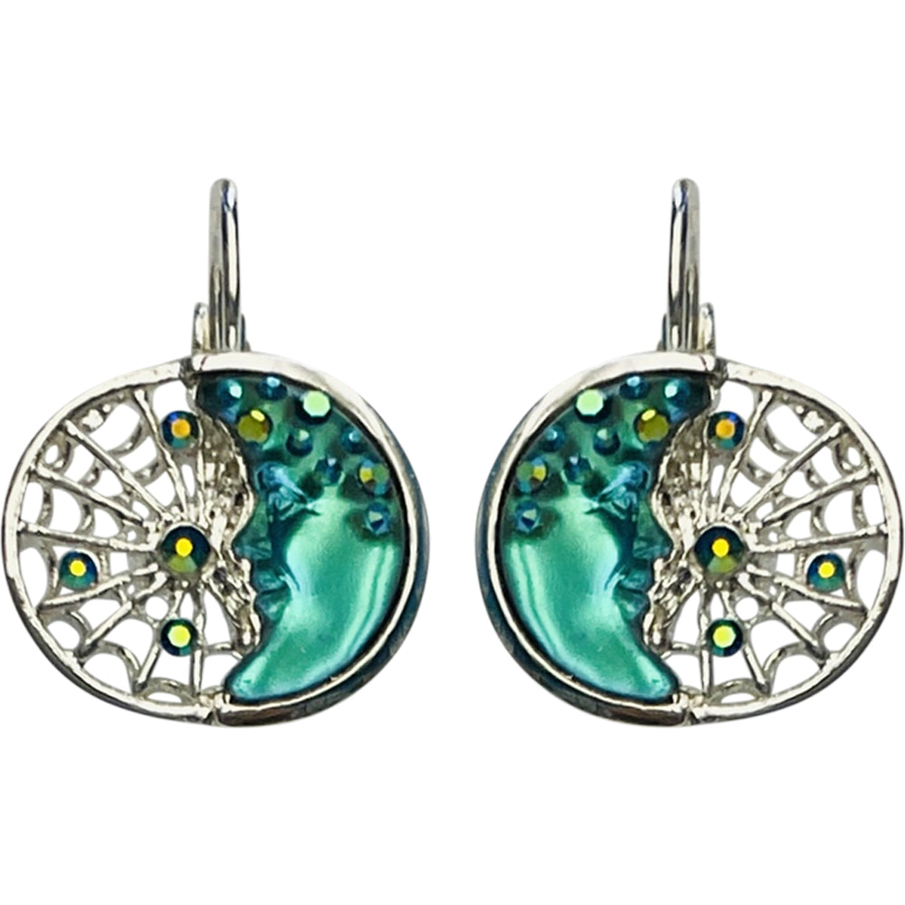 "One Of A Kind" Goddess Moon Shadow Dreamcatcher Leverback Earrings (Sterling Silvertone/Mystic Blue Sphinx)