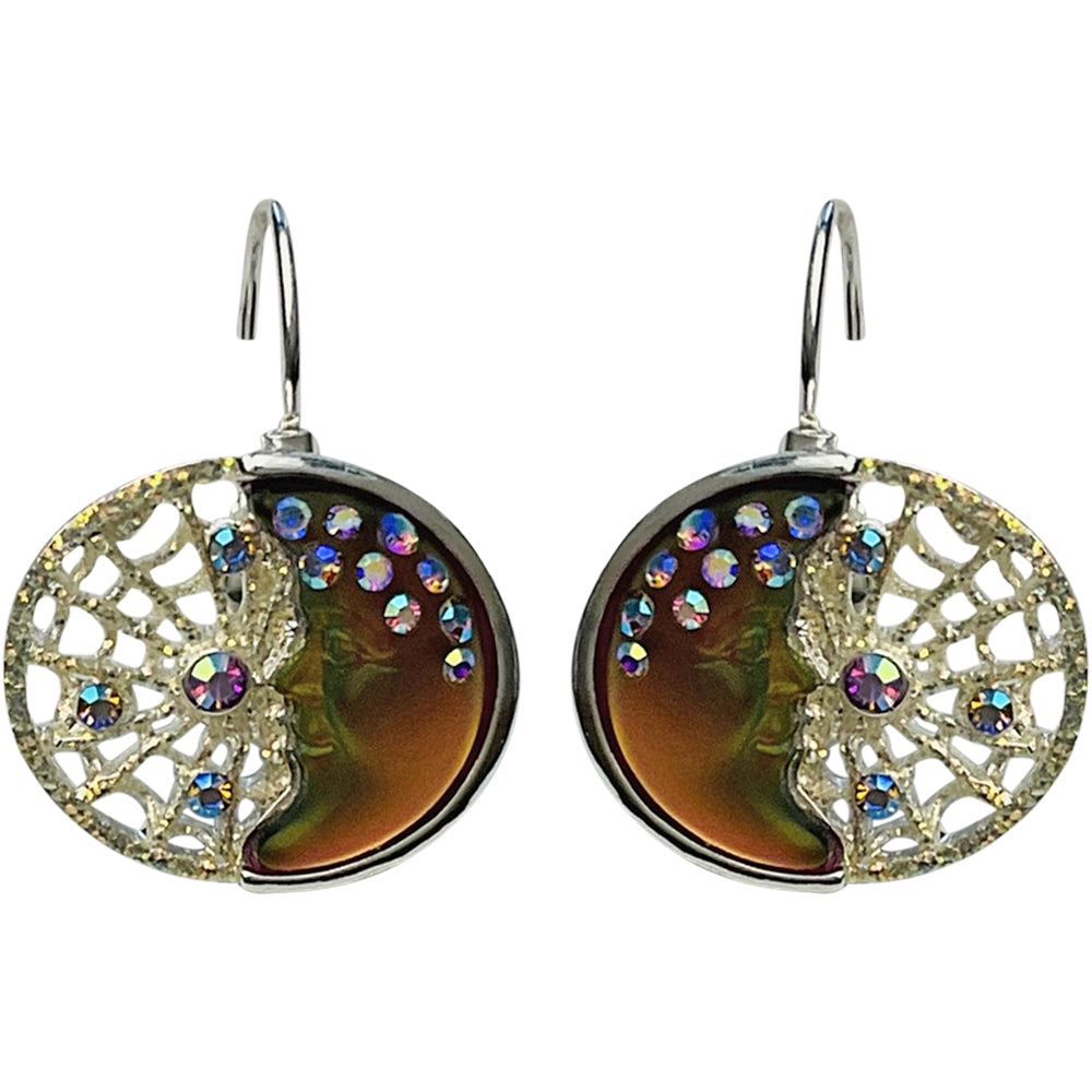 "One Of A Kind" Goddess Moon Shadow Dreamcatcher Leverback Earrings (Sterling Silvertone/Mystic Brown Iridis))