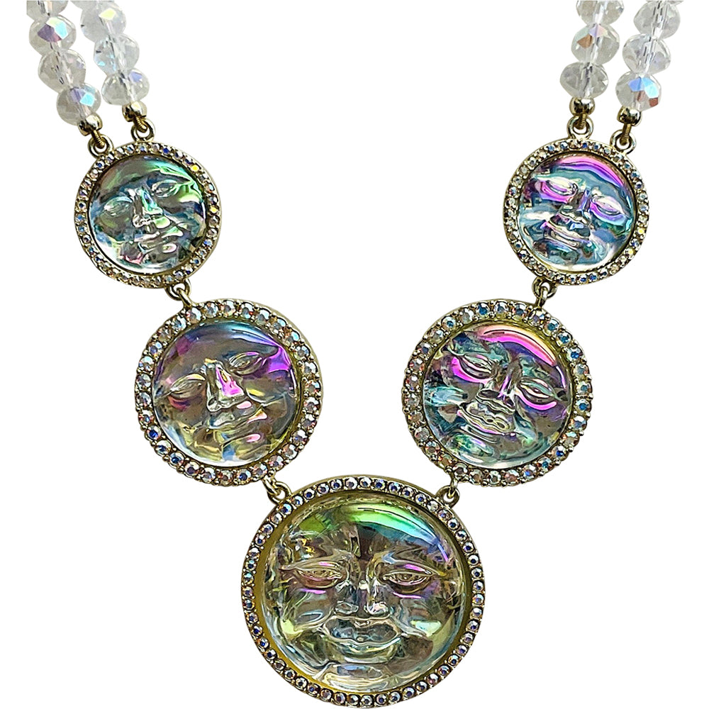 " One Of A Kind" Seaview Water Moon 5 Stone Beaded Necklace (Goldtone/Crystal AB)