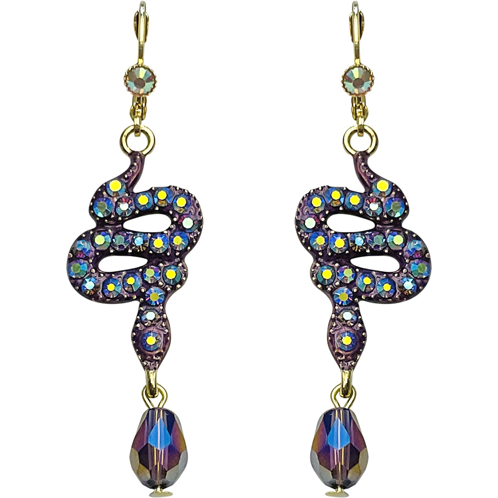 "One Of A Kind" Serpent Crystal Drop Leverback Earrings (Goldtone)