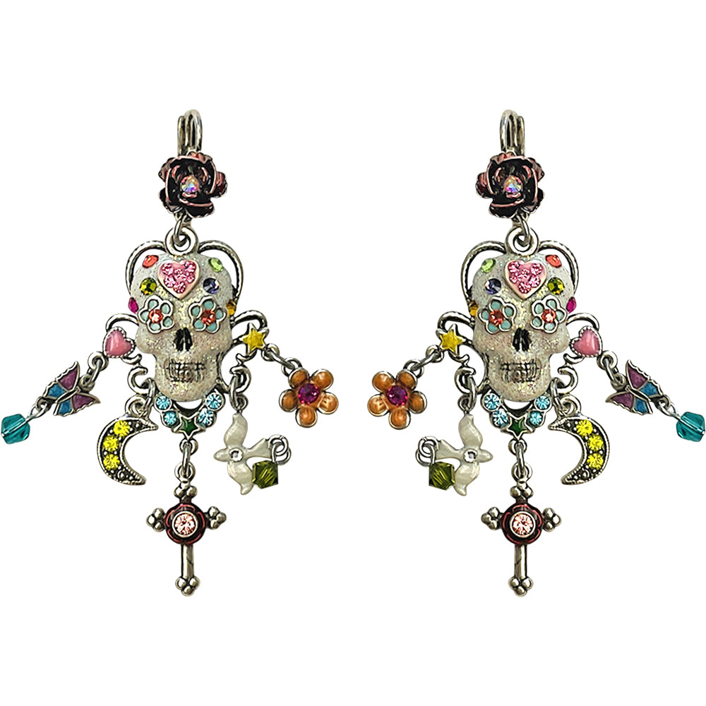 "One Of A Kind" Sugar Skull Leverback Earrings (Silvertone)