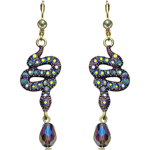 "One Of A Kind" Serpent Crystal Drop Leverback Earrings (Goldtone)