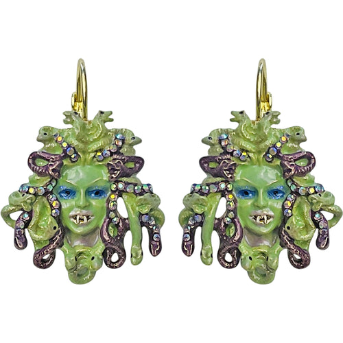 "One Of A Kind" Crystal Medusa Vampire Leverback Earrings (Goldtone)