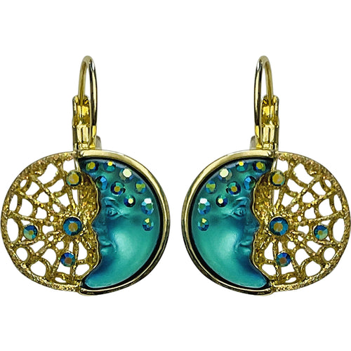"One Of A Kind" Goddess Moon Shadow Dreamcatcher Leverback Earrings (Goldtone/Mystic Blue Sphinx)