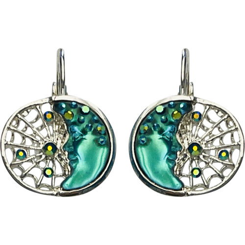 "One Of A Kind" Goddess Moon Shadow Dreamcatcher Leverback Earrings (Sterling Silvertone/Mystic Blue Sphinx)