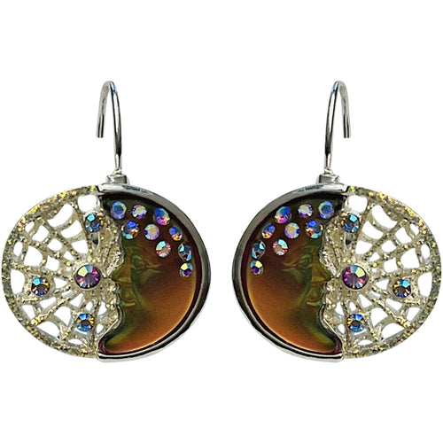 "One Of A Kind" Goddess Moon Shadow Dreamcatcher Leverback Earrings (Sterling Silvertone/Mystic Brown Iridis))