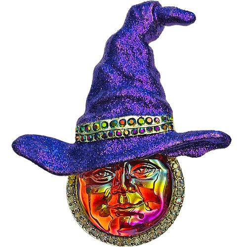"One Of A Kind" Bewitching Seaview Water Moon Witch Hat Pin Pendant (Silvertone)
