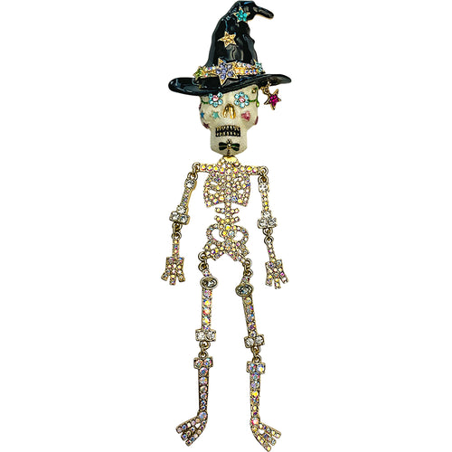 Sugar Skull Witch Skeleton Pin (Goldtone)