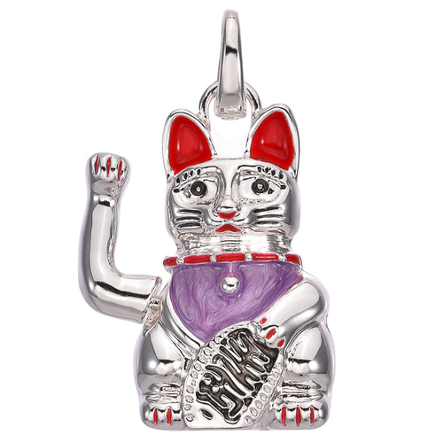 Lucky Cat Open Ring Charm (Sterling Silvertone)