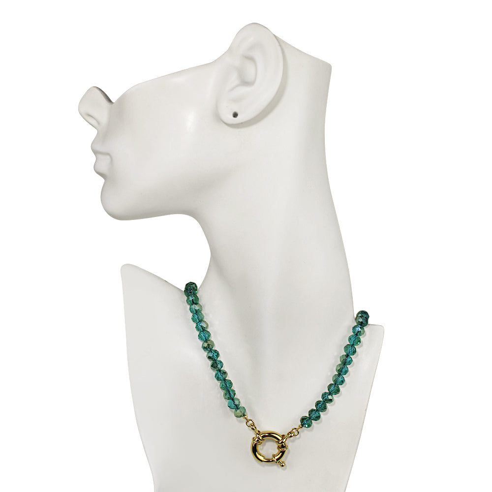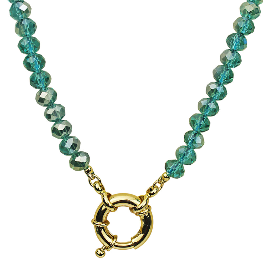 Crystalized 8mm Beaded Sailor Clasp Charm 18" Necklace (Goldtone/Teal/Azure)