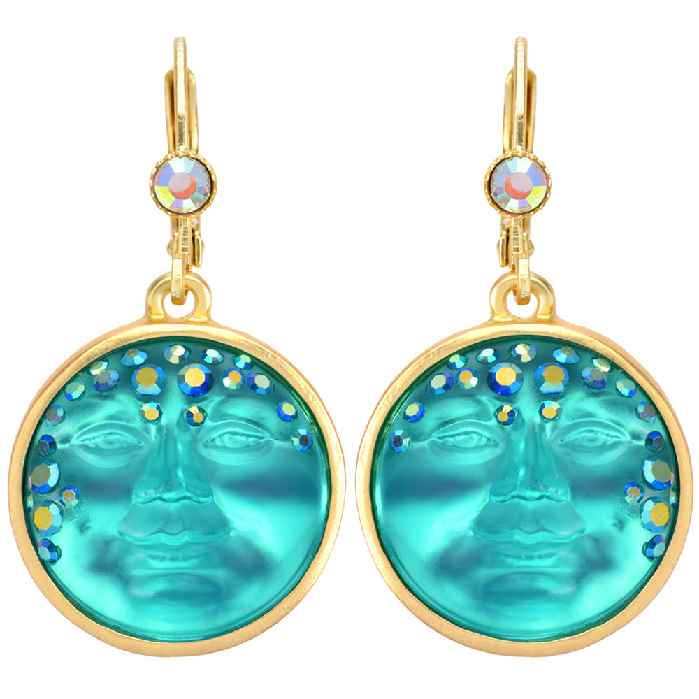 Goddess Mystic Seaview Moon 18mm Leverback Earrings (Goldtone/Azure)