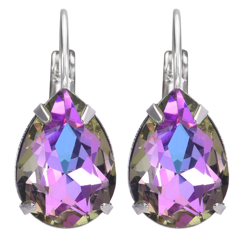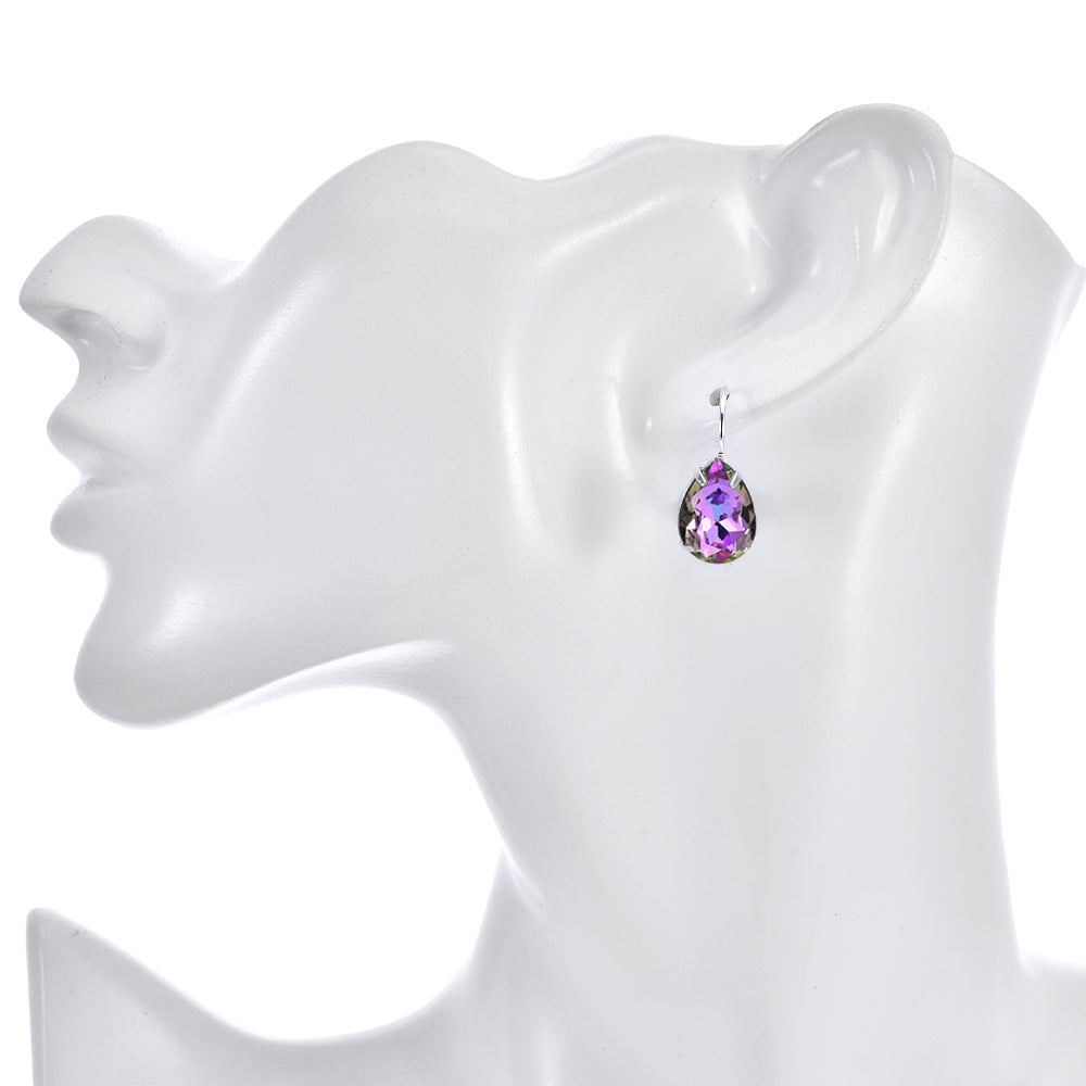 Mystic Petite Teardrop Leverback Earrings (Sterling Silvertone/Violet Champagne)