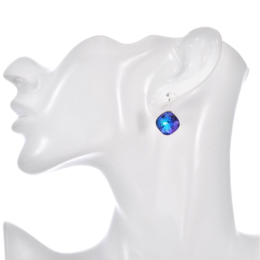 These leverback earrings showcase Mystic Blue Sphinx cushion cut stones that glow with an otherwordly light, as if captured from the heart of a midnight sky.