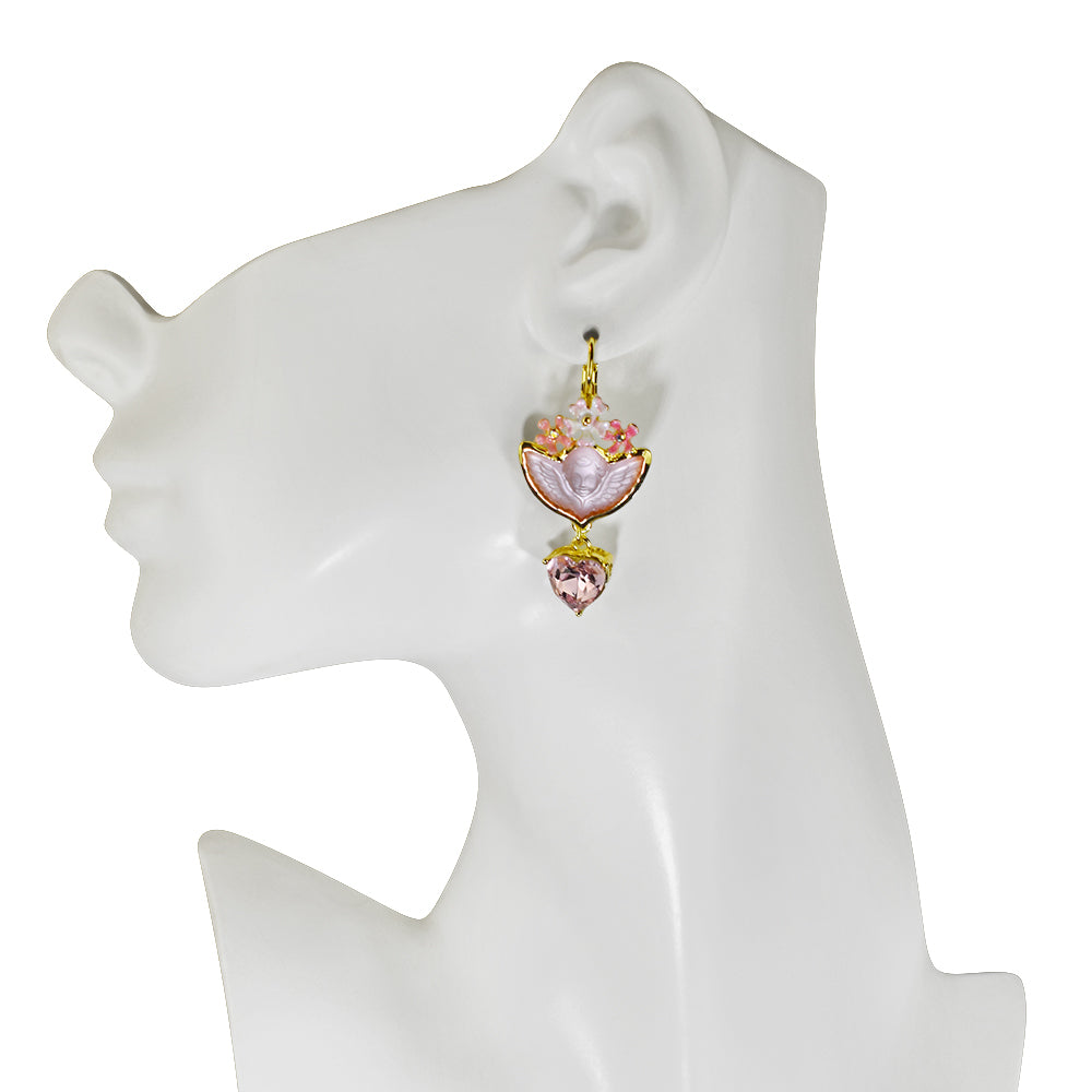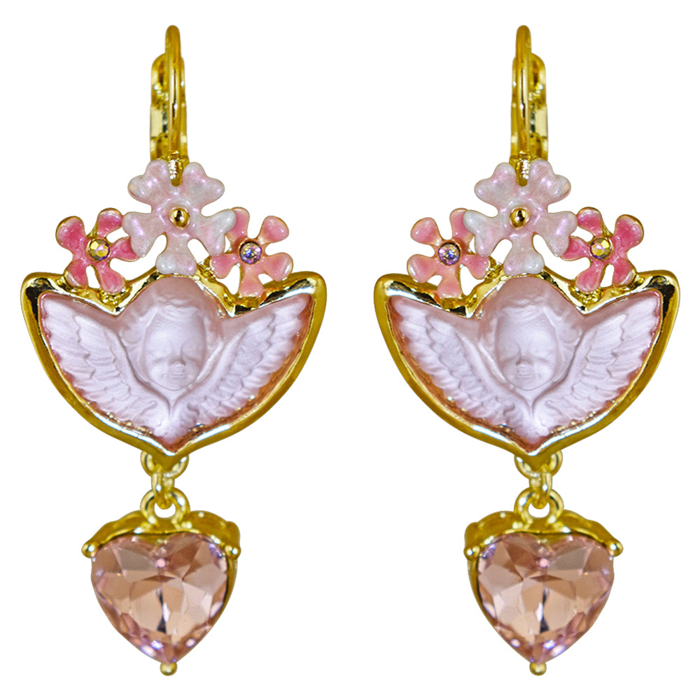 Enchanted Garden Cherub Leverback Earrings (Goldtone/Pixie Pink)