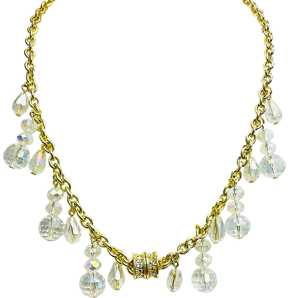 The Dancing Crystal Magnetic Necklace is created from a dazzling metallic chain accented with a multitude of faceted topaz aurora borealis beads.