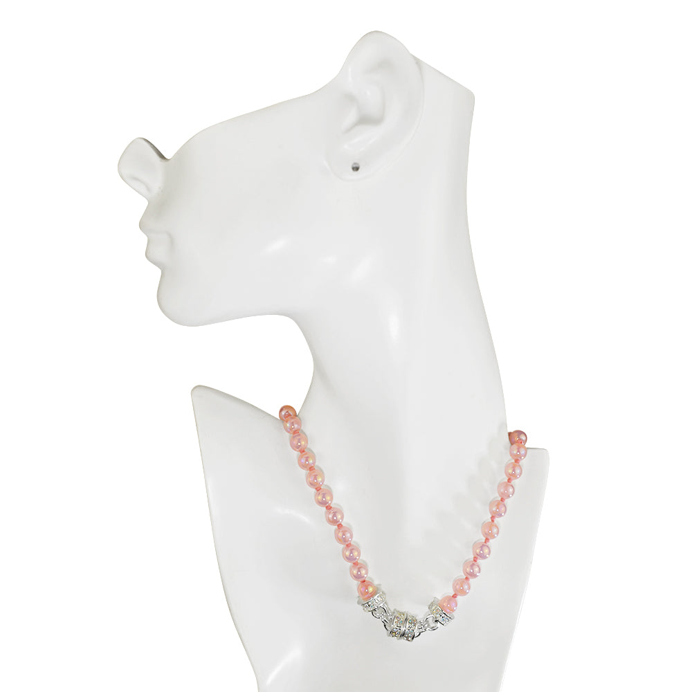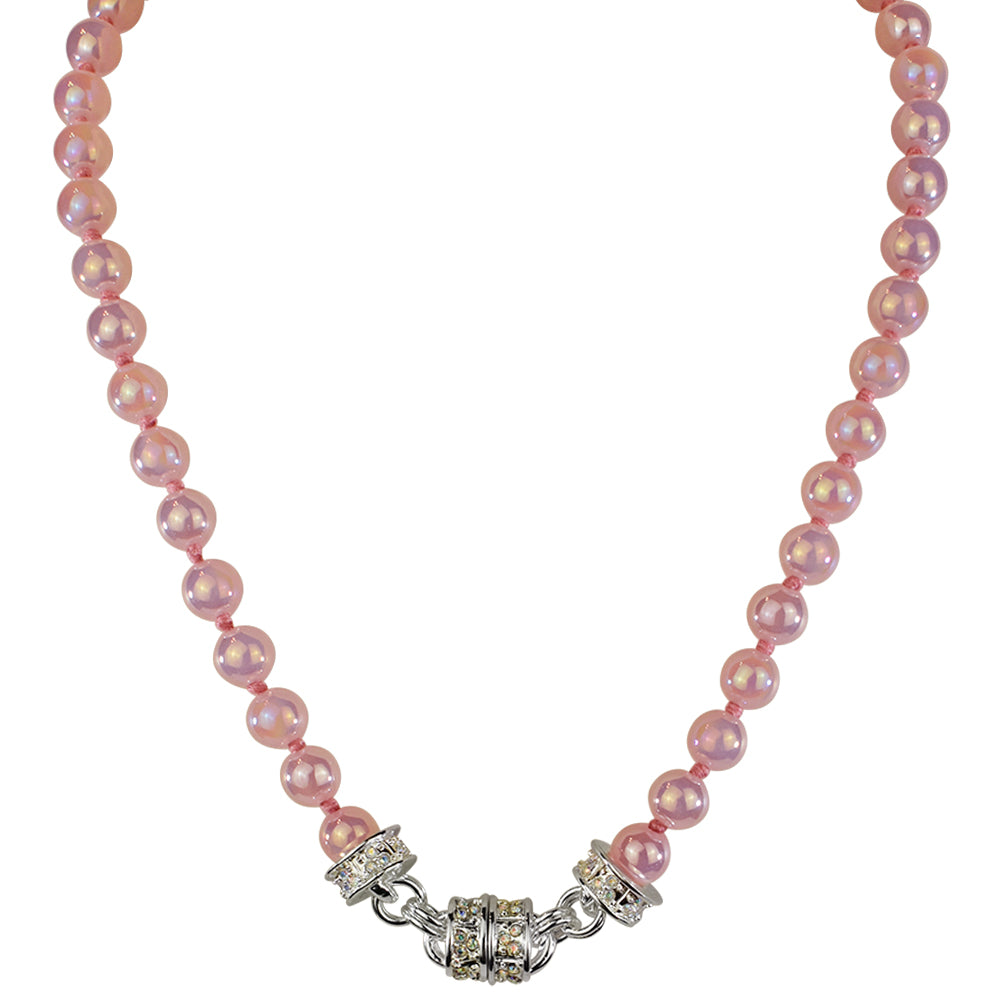 Moon Glow Beaded Magnetic Interchangeable Necklace (Sterling Silvertone/Pink)
