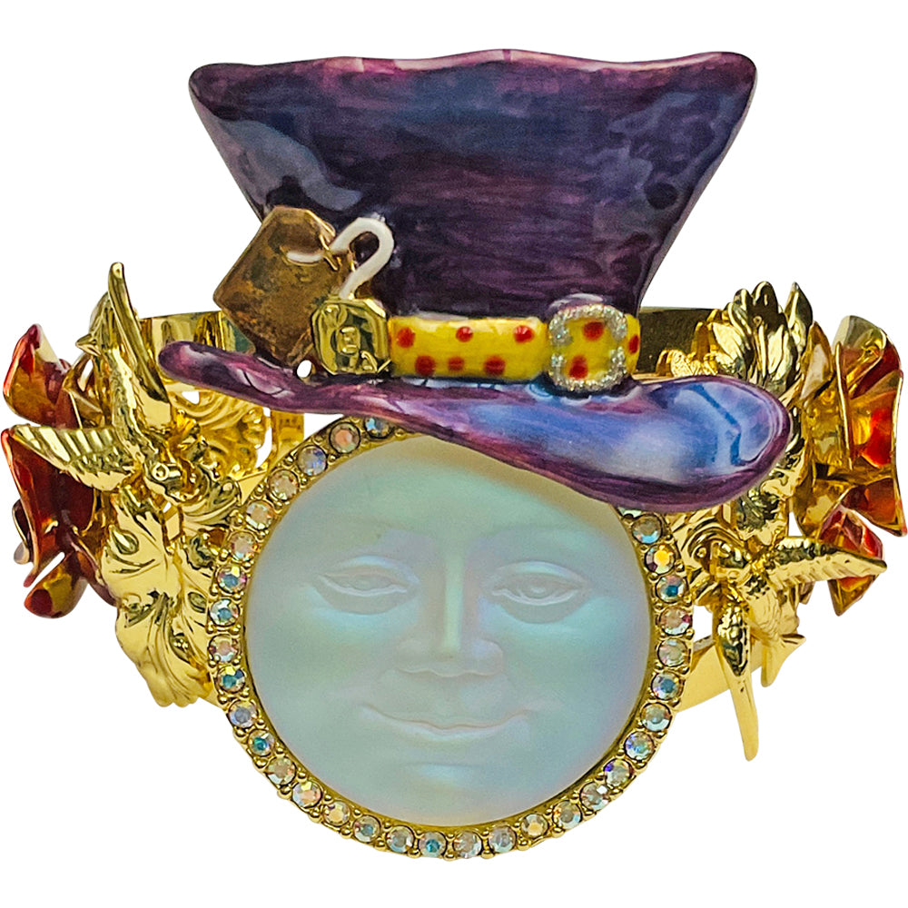Glass Seaview Moon Mad Hatter Cuff Bracelet (Goldtone)