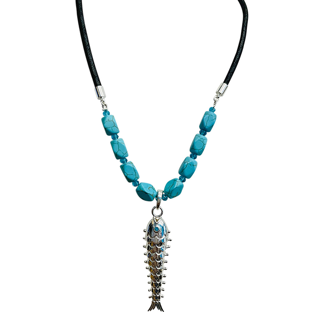 "One Of A Kind" Fairyland Fantasy Dancing fish Open Ring Charm Necklace (Silvertone)