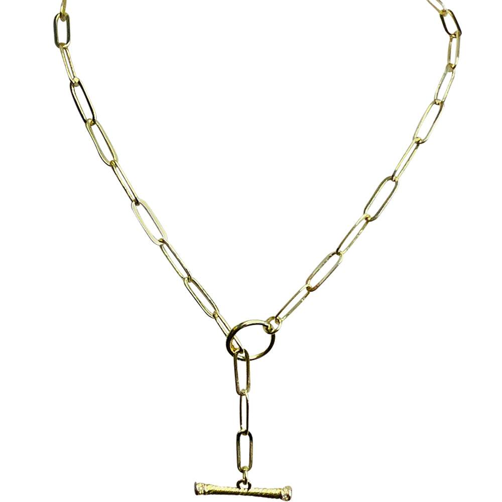 "One Of A Kind" Paper Clip Chain Toggle Necklace (Goldtone)