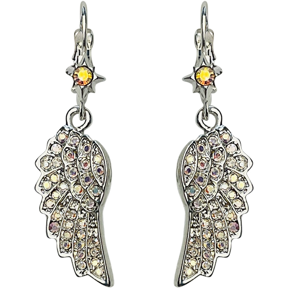 Dreamy Angel Wing Leverback Earrings (Silvertone)