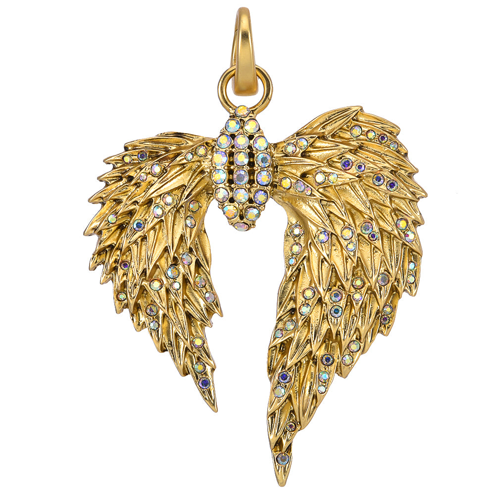 This open ring charm showcases majestic archangel wings, gracefully out streched and shimmering with faceted crystals that glint like fragments of heavenly light.