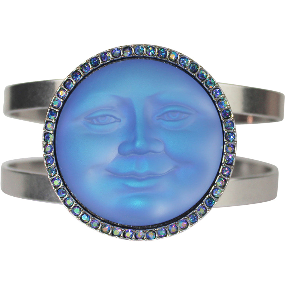 Glass Seaview Moon 35mm Cuff Bracelet (Matte Silvertone/Lt. Sapphire AB)