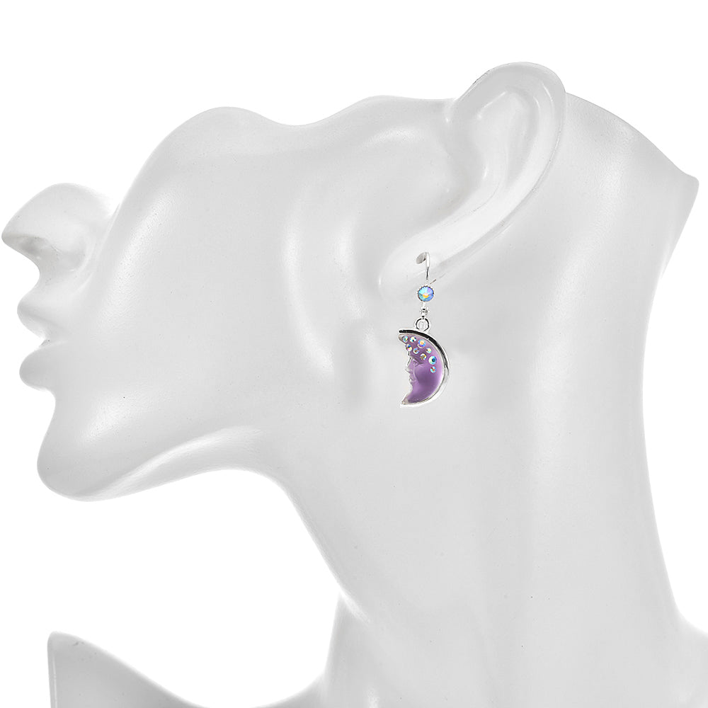 Illusion Goddess Moon Shadow Leverback Earrings (Sterling Silvertone/Violet)