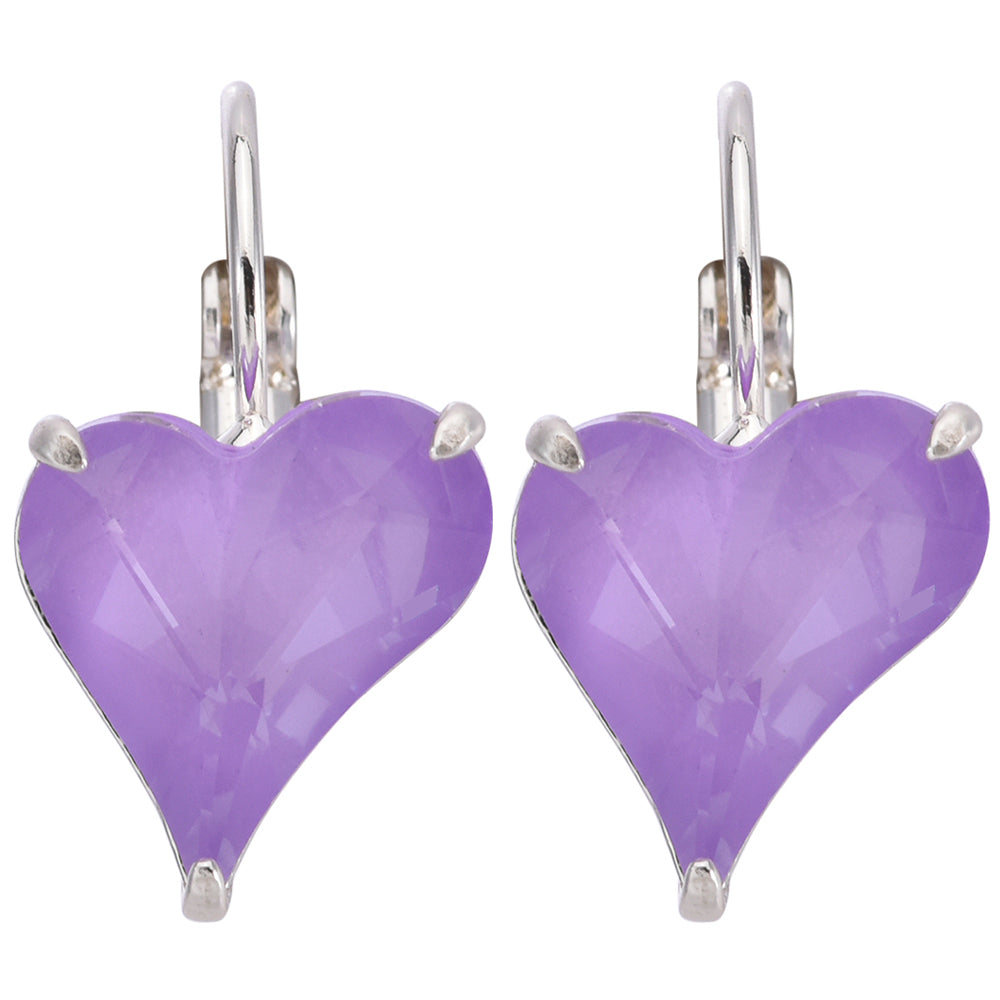 Misty Heart Leverback Earrings (Sterling Silvertone/Violet)